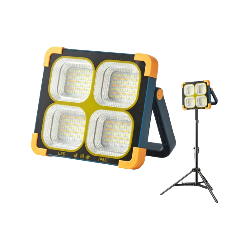 该手提式工作灯光通量为12000LM,内置8000毫安锂电池,集成太阳能充电功能。设计便于携带,可在无电源环境下提供照明,常用于工地作业、维修照明等场合。