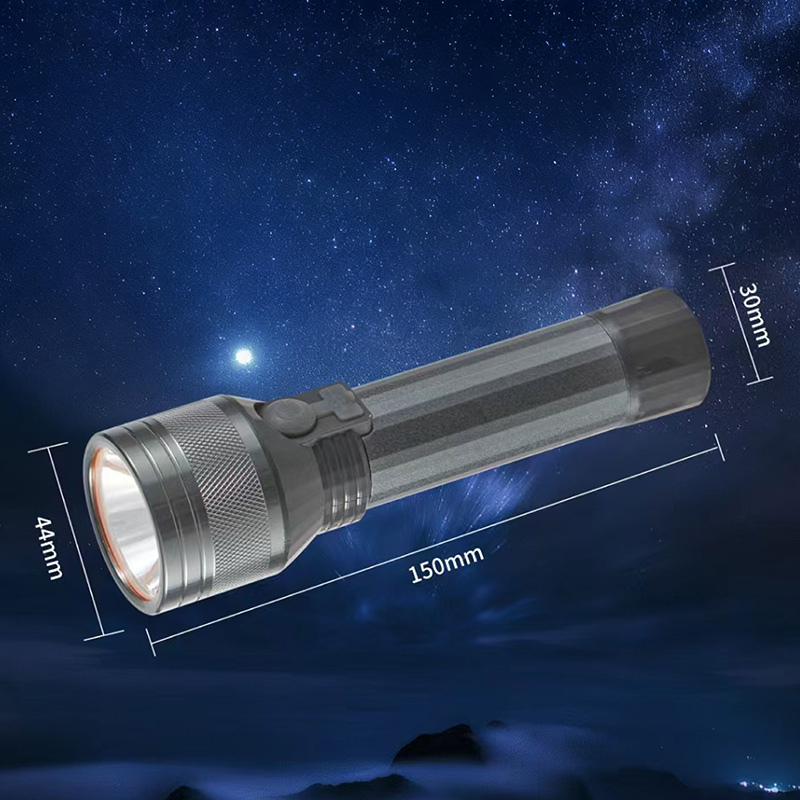 本手电筒采用全铝合金材质结构,整体长度为150mm,具备良好的散热性与耐用性。内置锂电池容量为120毫安,支持USB充电,可重复循环使用。光源采用LED芯片,发光效率高,使用寿命较长。