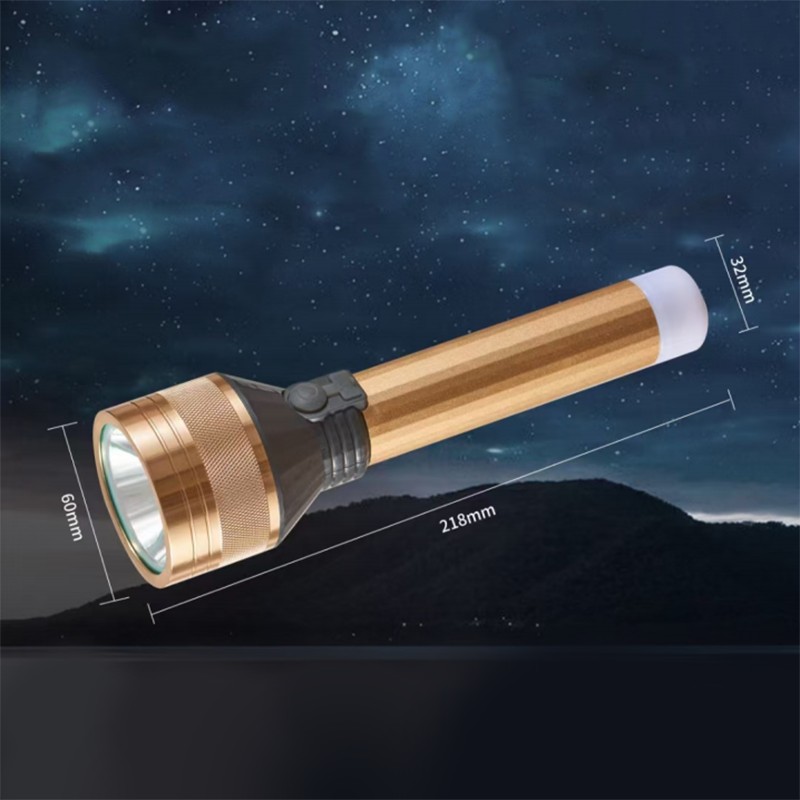 本产品是一款采用激光炮设计理念的锂电手电筒,总长度为218mm。内置容量为2600毫安的锂电池,提供稳定的电力支持。壳体通常采用铝合金材质,表面经氧化处理,具有抗腐蚀与耐磨特性。光学系统使用高光效LED芯片,配合深度光杯设计,可实现远距离照明。支持多种照明模式,包括强光、弱光及闪烁功能,可通过尾部或侧按开关进行操作。部分型号具备Type-C充电接口,支持充放电保护。产品结构设计注重散热与防水,部分产品达到IPX5及以上防护等级,适用于户外作业、应急照明等场景。