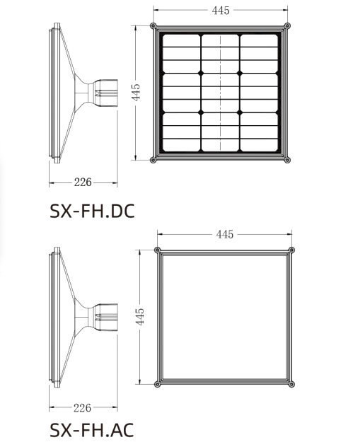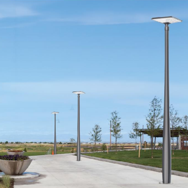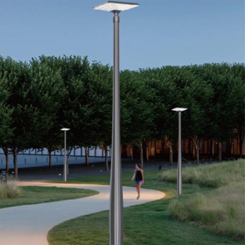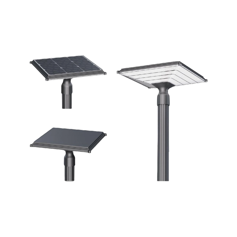此系列为方形设计的太阳能庭院灯,提供15W、30W及60W三种功率选项。采用太阳能供电,通常配备 LiFePO4电池,支持光控加时控的自动工作模式。灯体结构为压铸铝材质,表面经防腐处理。发光部分采用LED模组,光效通常不低于100lm/W,适用于住宅庭院、公园步道及非机动车道的照明。