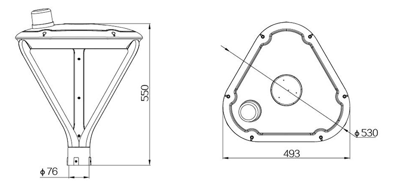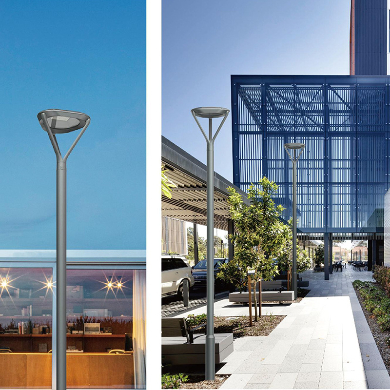 此系列庭院灯采用国标ADC12材质进行压铸成型,功率范围为30W至100W,使用市电供电。ADC12铝合金材质在压铸流动性、抗拉强度及耐腐蚀性方面具有特定性能。压铸工艺保障灯体结构的一体性和散热效能,适用于需要长期稳定工作的公共户外照明场所。
