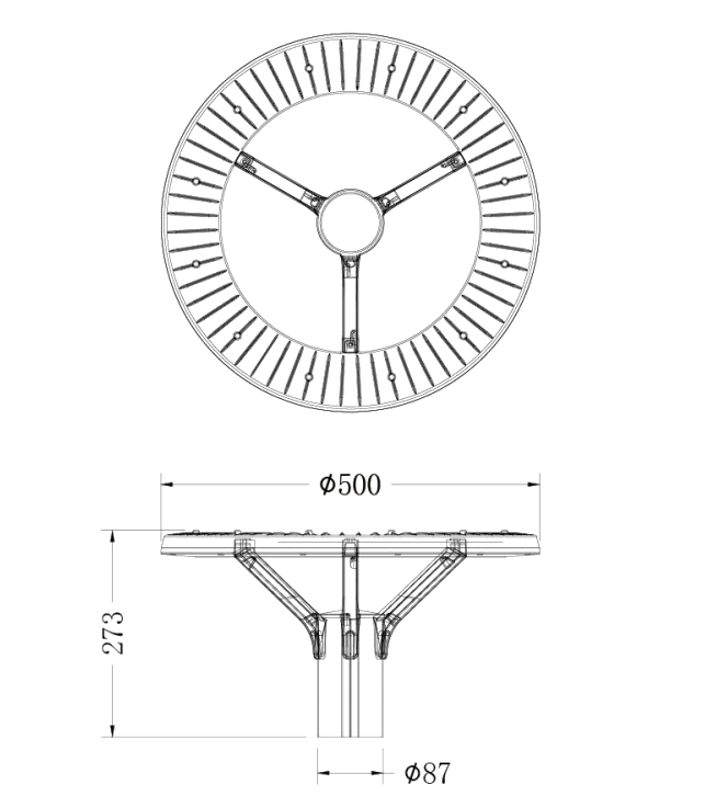 该灯具尺寸为273mm×500mm×500mm,功率30W-60W,为紧凑型结构设计,适合安装空间受限的场所,如低矮护栏、矮墙或狭窄绿化带照明。