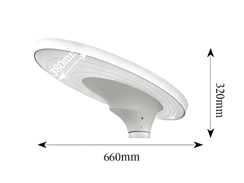 此型号为40W功率的LED庭院灯,其灯体外形尺寸为660*320mm,呈现出现代化的细长矩形结构。灯具主体多采用铝合金材料,辅以钢化玻璃盖板,旨在提升耐久性与透光性。发光效率普遍超过110lm/W,提供约4400LM的总光通量。光束角通常为120度,能够在安装后形成宽阔的椭圆形光斑,覆盖较大面积。支持侧装或抱箍式安装于立柱,适用于需要侧向照明的区域,如道路辅路、小区车道及庭院周边。其工作环境温度范围宽,并具备防雷击浪涌保护。
