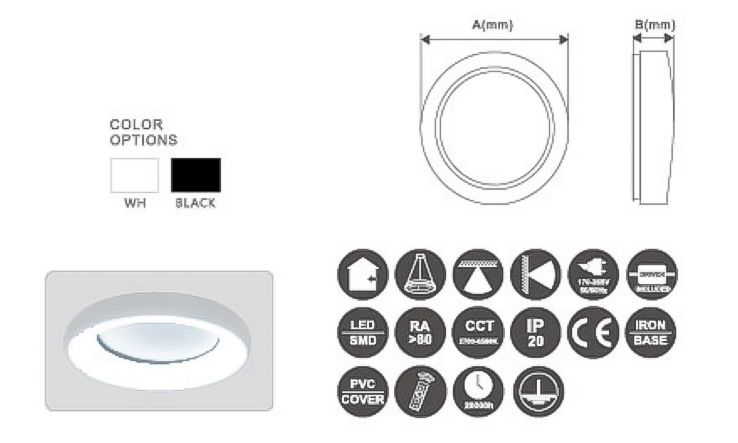 该吸顶灯系列功率覆盖24W至45W,适用于客厅、会议室等中型面积空间的整体照明。灯具结构多采用金属与塑料结合,扩散板材质为亚克力,确保光线的均匀分布。其光通量输出范围约在2600lm至5000lm,提供3000K、4000K等多种色温选项,显色指数通常大于80。部分型号支持三段调色温或智能调光功能。采用吸顶式安装,设计注重与室内装修风格的融合。