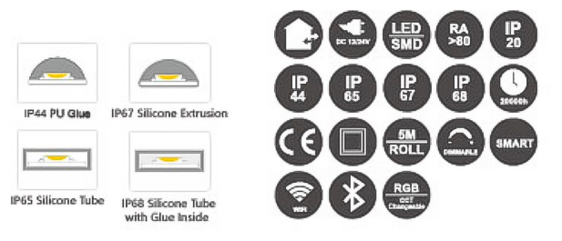该系列LED灯带功率覆盖4.8W至20W,采用柔性FPC基板,可裁剪间隔通常为50mm/100mm。光色包括单色白光(3000K-6500K)及RGB彩色版本,LED封装规格常见2835或5050。工作电压为DC12V或DC24V,需配合开关电源使用。背面附3M胶带,适用于柜体、展柜及间接照明场景。