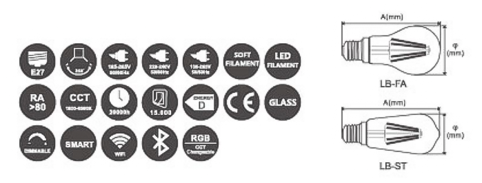 该类型灯泡常采用E27或B22标准灯头,兼容多数传统灯具接口。灯体多由玻璃材质构成,支持全周光发光角度。LED灯丝技术实现了低能耗与较长使用寿命,常规寿命可达15000小时以上。
