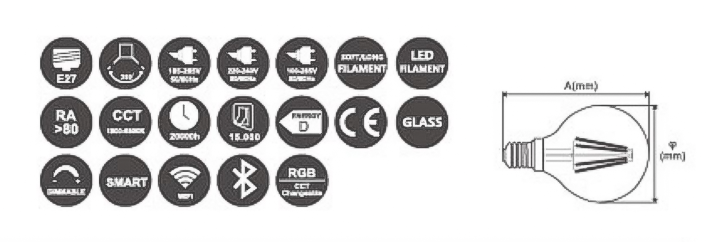 该产品寿命约15000小时,显色指数大于80,光线分布均匀,无频闪现象。适用于家居、商业及装饰类照明场所,如吊灯、壁灯和复古风格灯具。
