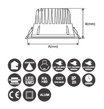 提供7W至40W功率配置,适用于不同层高与照度需求的空间。采用PC面罩与铝制散热壳体组合,IP等级常见IP20(室内)至IP54(防尘防溅)。色温范围2700K-6000K,部分型号显色指数可达显色指数≥90。支持DC12V/24V或AC85-265V宽电压输入,兼容常见电气环境。