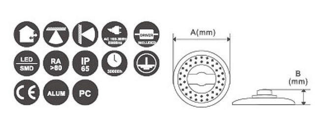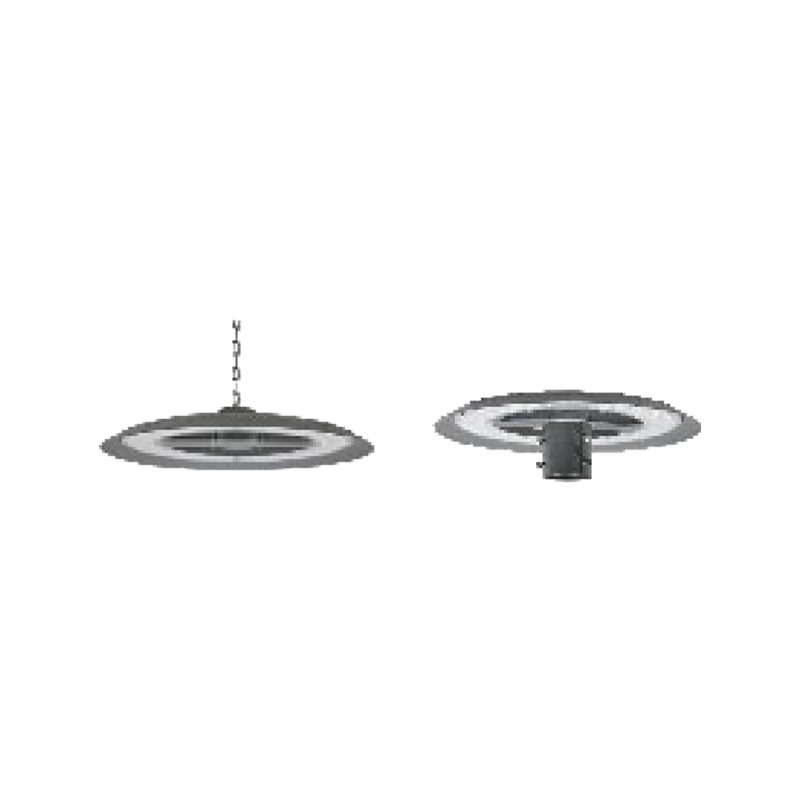 灯具通常配备高光效LED芯片,可实现均匀的大范围照明。镂空结构辅助散热,有助于维持光电系统稳定性和使用寿命。表面处理为灰色,利于与环境协调并减少维护需求。该灯具适用于需要高亮度、高效照明的场合,安装方式适配多数高棚结构。