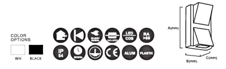 外壳材质为压铸铝与钢化玻璃,表面经防氧化和喷塑处理,具有耐候与防腐蚀特性。结构设计支持墙挂安装,适用于住宅走廊、庭院、楼梯间等场所。