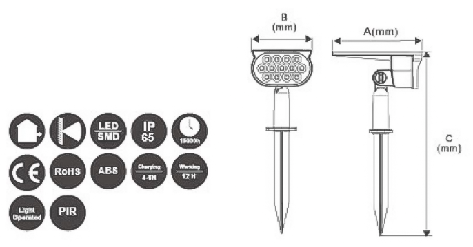 灯具外壳由工程级ABS材料构成,表面具有IP54防护结构,可抵御日常雨水及灰尘侵入。光控系统支持自动感应环境光照强度,实现天黑自动点亮、天亮自动关闭。安装方式支持地面插杆或壁挂固定,适用于庭院、路径、草坪等多种户外场景。