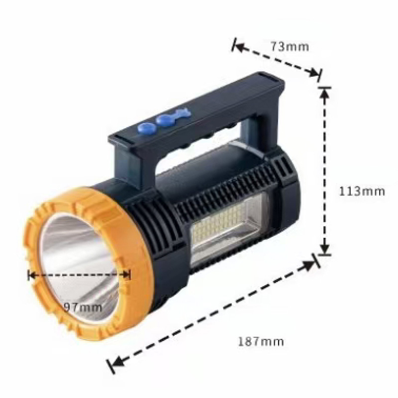 本产品为激光炮带侧灯锂电探照灯,总长度187mm,内置容量4000毫安锂电池,适用于多种户外及专业场景。主灯采用高亮度LED光源,支持远近光调节,照射距离较远。侧灯设计辅助照明,扩展照射范围。具备激光定位功能,可精确指示照射方向。外壳采用工程级材料,结构紧凑,防护性能良好。支持Type-C充电接口,充电效率较高。适用于夜间作业、搜救、露营及车辆维修等场合。