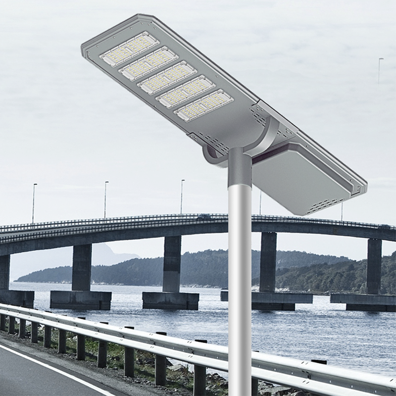 该一体式太阳能路灯提供65W、80W及100W三种功率,IP65防护等级。集成化设计简化安装流程,内置大容量电池保证阴雨天气下的续航。适用于需要中等亮度照明的街道、停车场及校园道路,灯具通常采用压铸铝材质以支持散热。